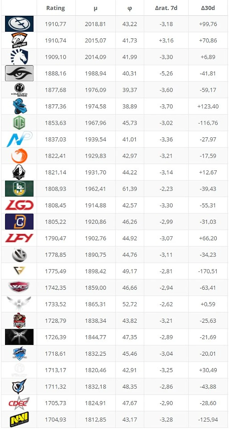 Второе место в рейтинге заняла Virtus.pro, третье – Team Liquid. Также в топ-25 вошли Team Empire, Vega Squadron и Natus Vincere.