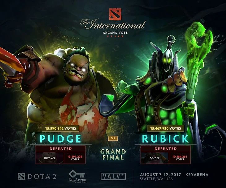 В финале сразятся Pudge и Rubick, которые одолели Инвокера (разница – 2 млн голосов) и Снайпера (разница – 5 млн голосов) соответственно.