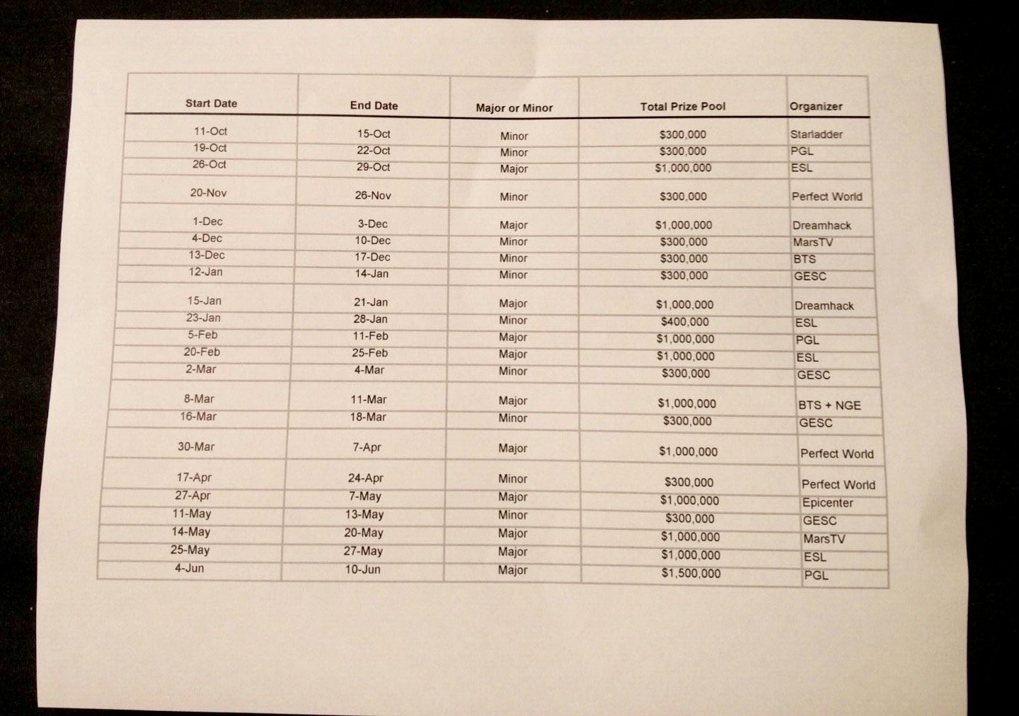 Vavle представила расписание мейджоров и миноров на сезон-2017/18. Всего пройдет по 11 турниров каждого уровня.