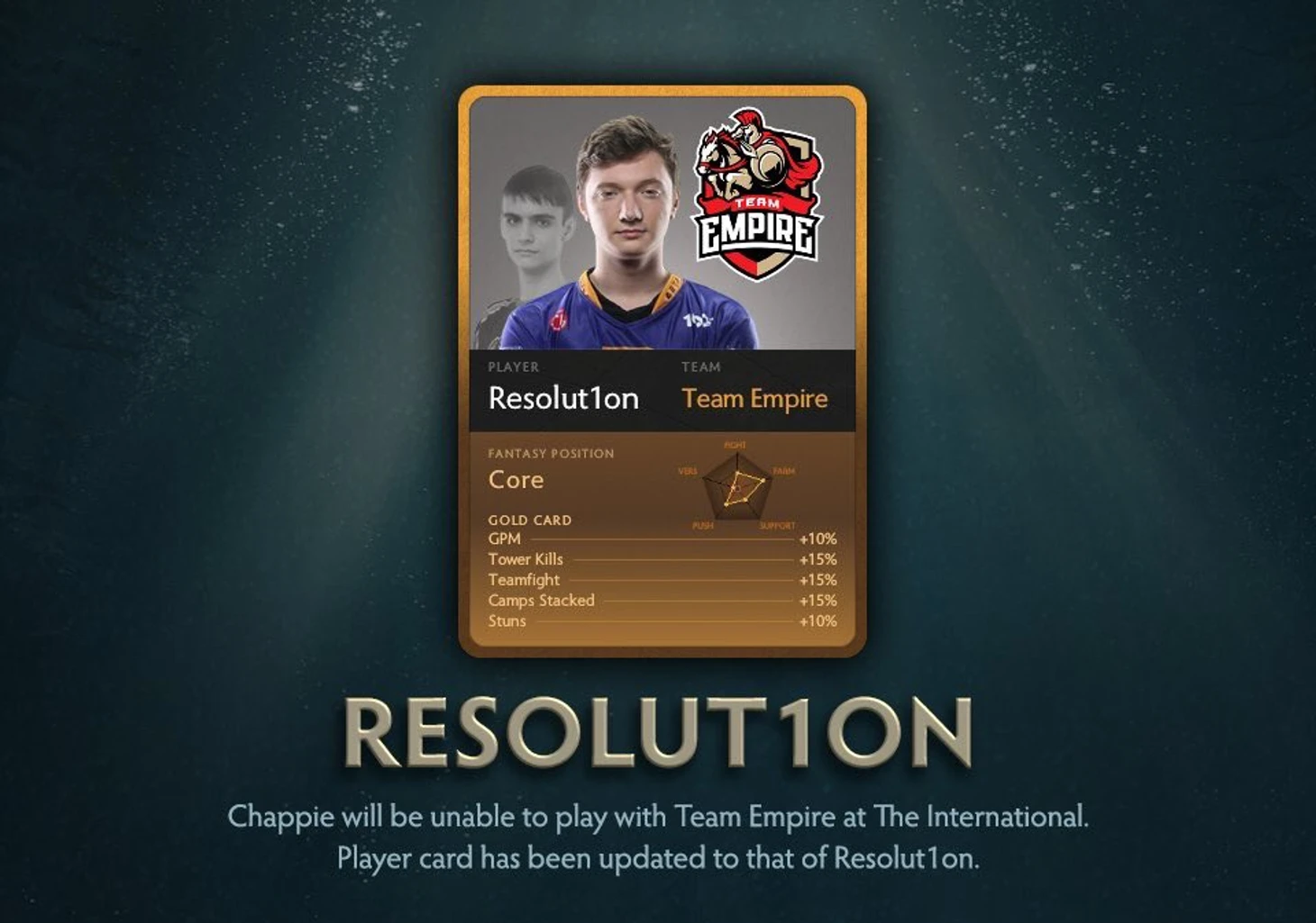 Теперь игроки, у которых была карточка Chappie, получают бонусы за игру заменившего его Resolut1on.