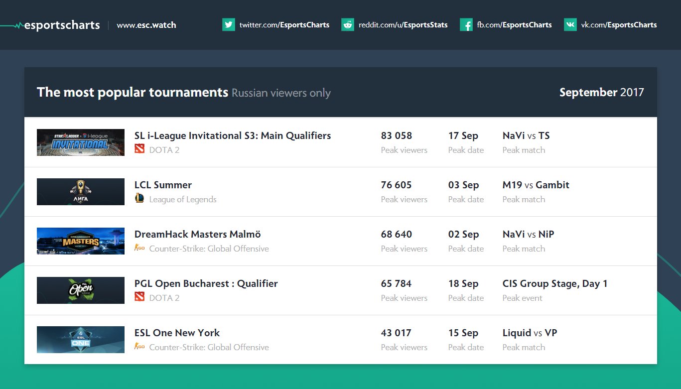 Портал Esports Charts представил статистику самых просматриваемых событий среди русскоязычной аудитории за сентябрь.