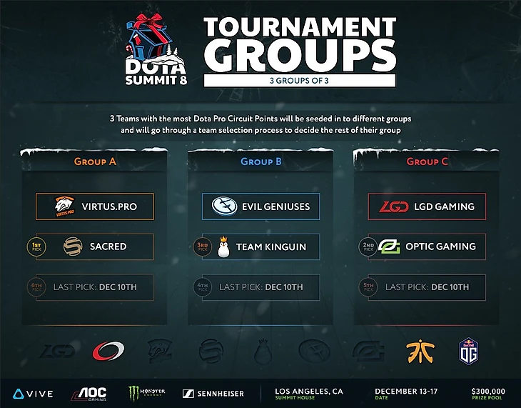 10 декабря VP, EG и LGD в том же порядке выберут оставшихся соперников из тройки: Complexity, Fnatic и OG.