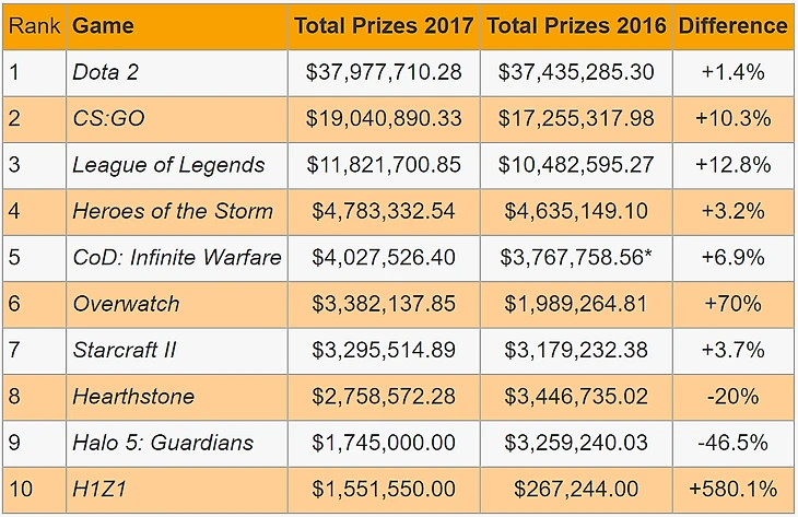 В Dota 2 разыграли 38 млн долларов за год. В CS:GO и LoL в сумме – меньше