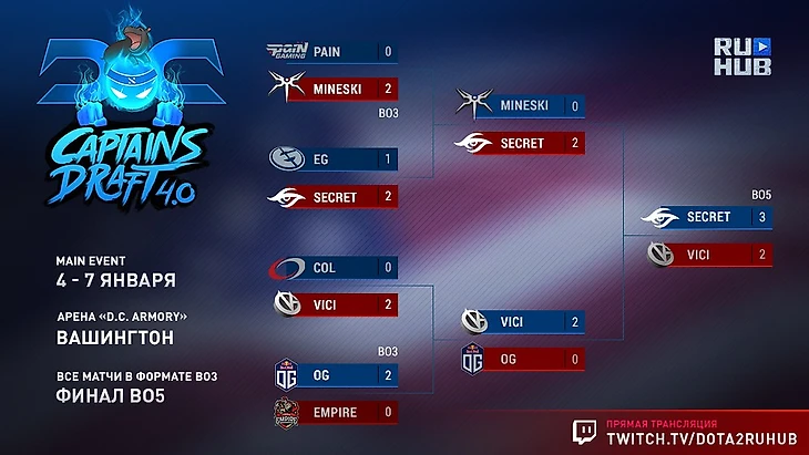 С 4 по 7 января в Вашингтоне, округ Колумбия, прошел первый в этом году рейтинговый турнир – майнор Captains Draft 4.0.