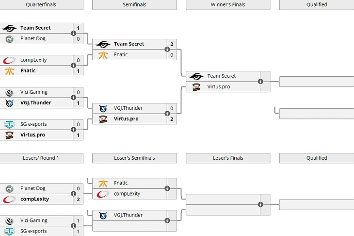 В финале верхней сетки «медведи» сыграют с Team Secret. Победитель этого матча пройдет напрямую в полуфинал турнира и заработает очки, проигравший начнет борьбу в плей-офф с четвертьфинала.