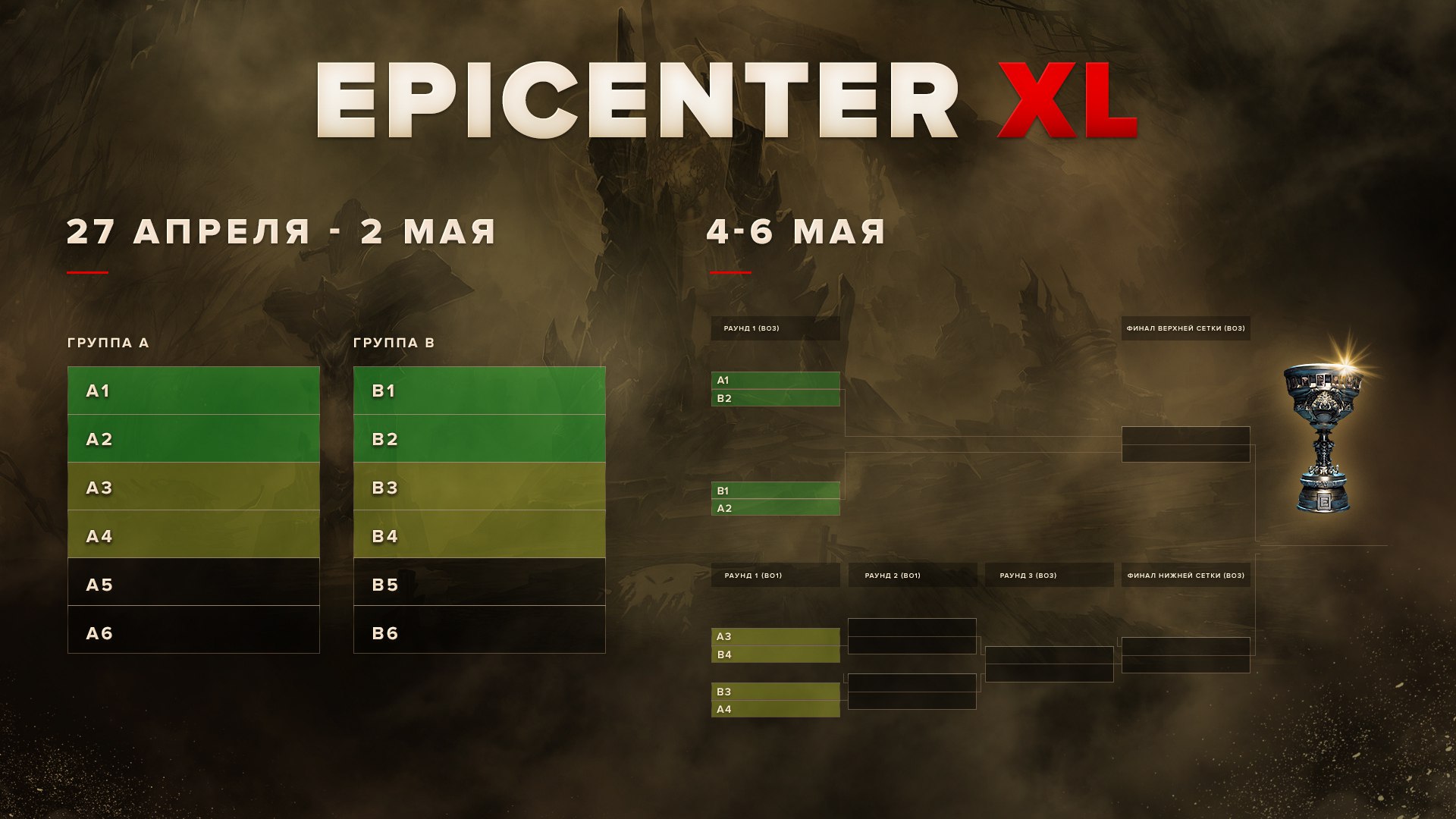 В плей-офф EPICENTER XL выйдут 8 команд из 12. Формат – Double Elimination