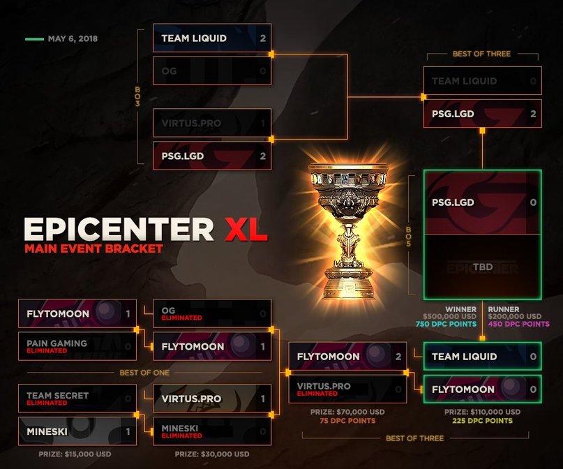 13:00 FlyToMoon 1:2 Team Liquid / финал лузеров16:30 PSG.LGD 3:1 Team Liquid / гранд-финал