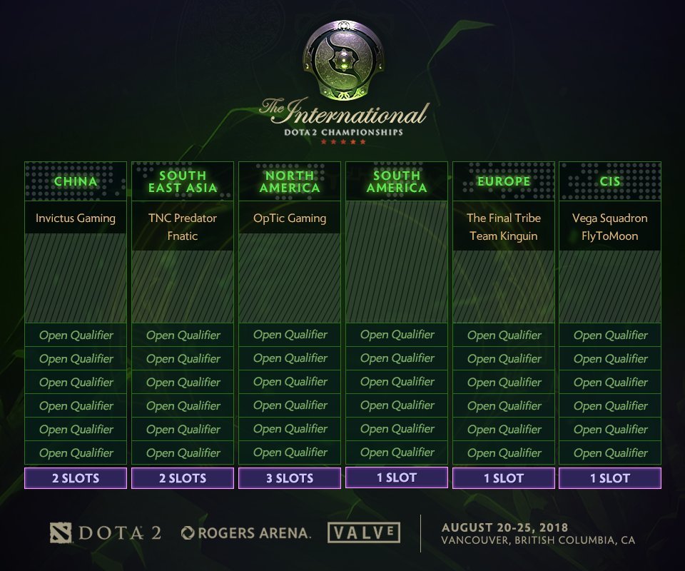 СНГ получил 1 слот на TI8 из отбора. Северная Америка – 3