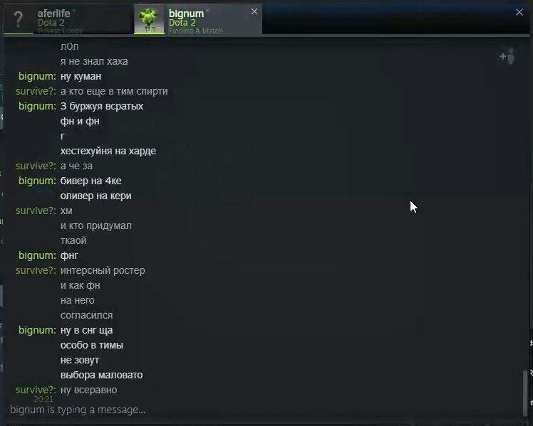 Илья «Alohadance» Коробкин на стриме случайно показал переписку с Данилом «Bignum» Шеховцовым, в которой они обсуждали новый состав Team Spirit.