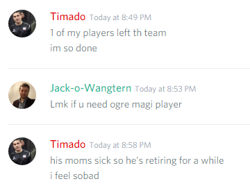 Timado: «Его мама заболела, так что он прекратит играть на какое-то время. Мне так плохо».