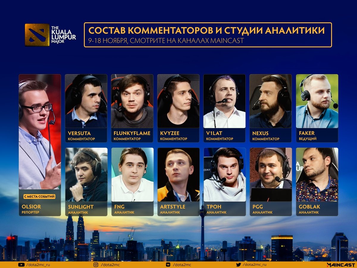 Студия Maincast опубликовала список комментаторов и аналитиков, которые будут освещать The Kuala Lumpur Major.