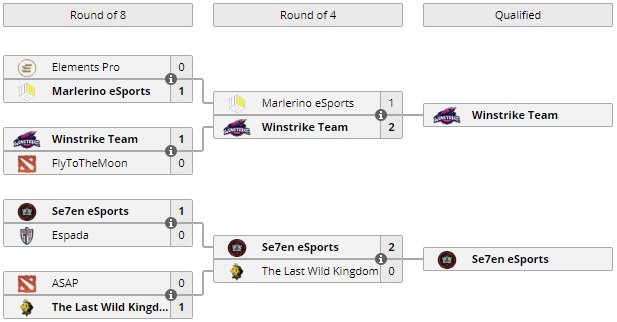 Elements Pro Gaming – Marlerino EsportsWinstrike – FlyToTheMoonSe7en Esports – EspadaThe Last Wild Kingdom – ASAP