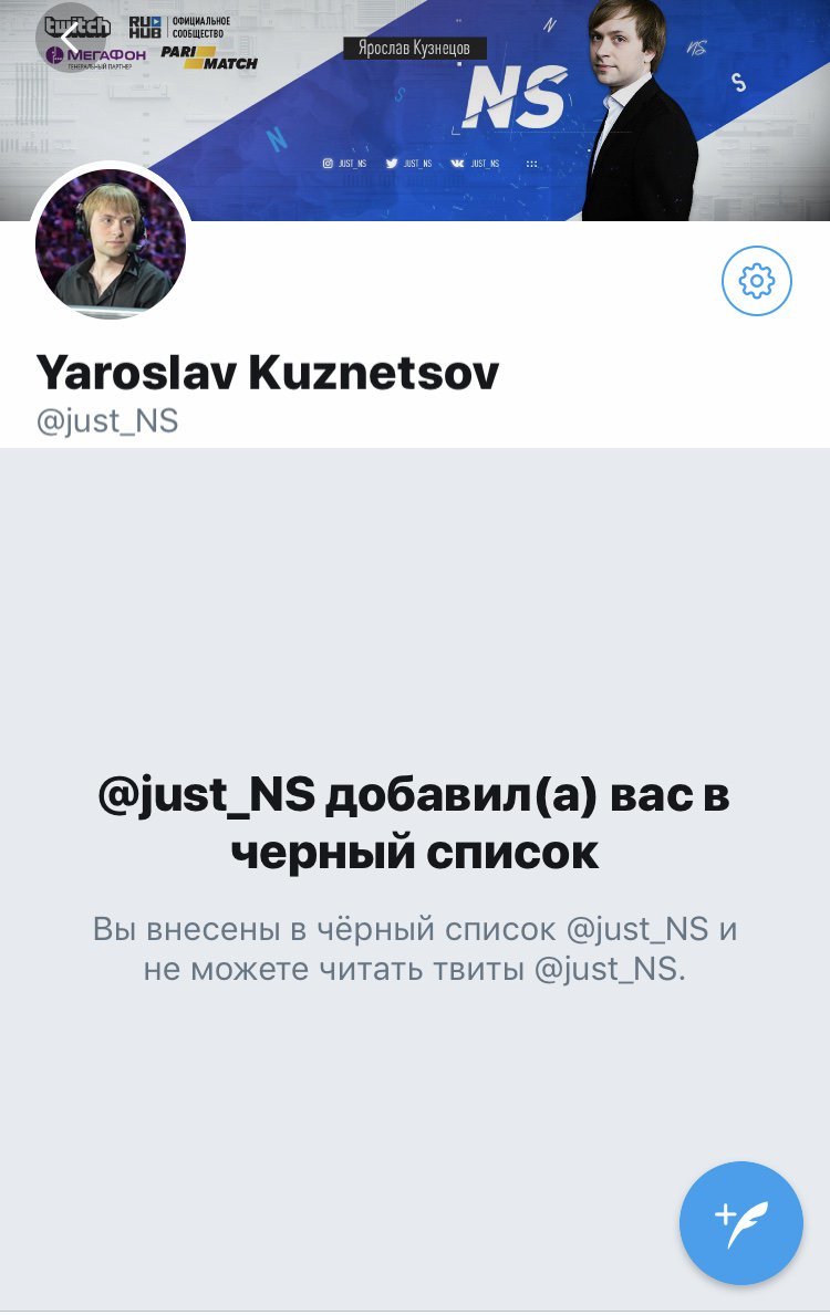 Аналитик Рухаба Ярослав «NS» Кузнецов забанил комментатора Мэйнкаста Михаила «Olsior» Зверева в твиттере.