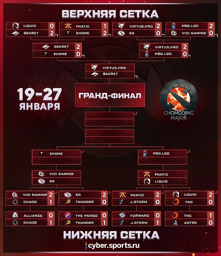 Сетка The Chongqing Major: Virtus.pro сыграет с Secret, EG встретятся с Vici