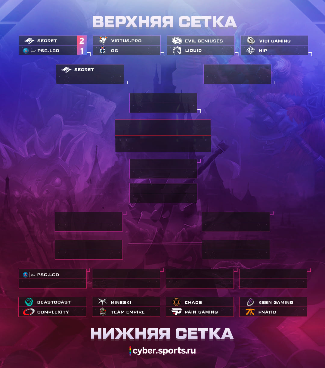 Team Secret сразится с победителем матча Virtus.pro – OG, а PSG.LGD – с составом, который выиграет матч Complexity – beastcoast.
