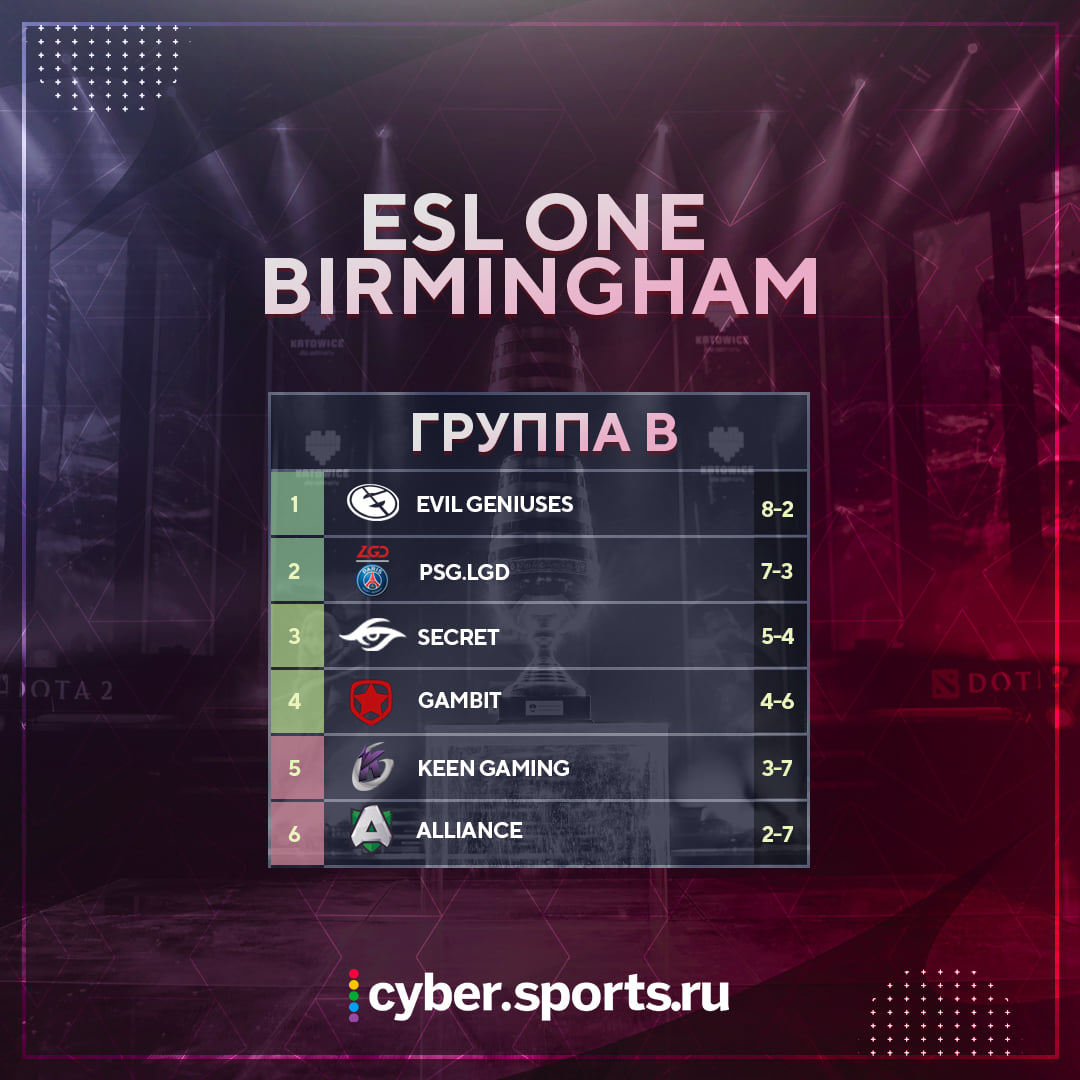 Определились все позиции команд в группе B на ESL One Birmingham.