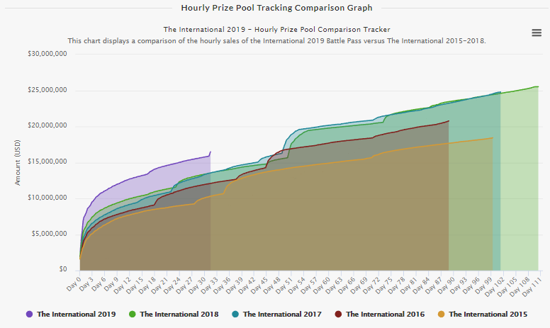 Сейчас общий призовой фонд турнира составляет 64,7% от прошлогоднего, призовой фонд The International 2018 – 25,5 млн долларов.