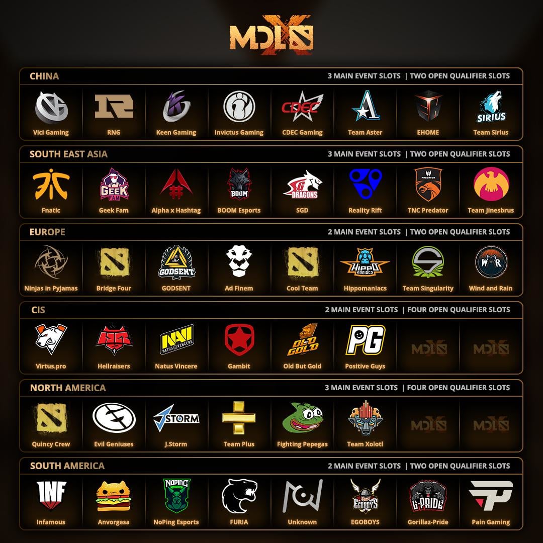 Китай, Юго-Восточная Азия и Северная Америка получат по три слота на турнире. СНГ, Европа и Южная Америка разыграют в отборах по два слота. Еще одна команда пройдет на турнир через майнор.