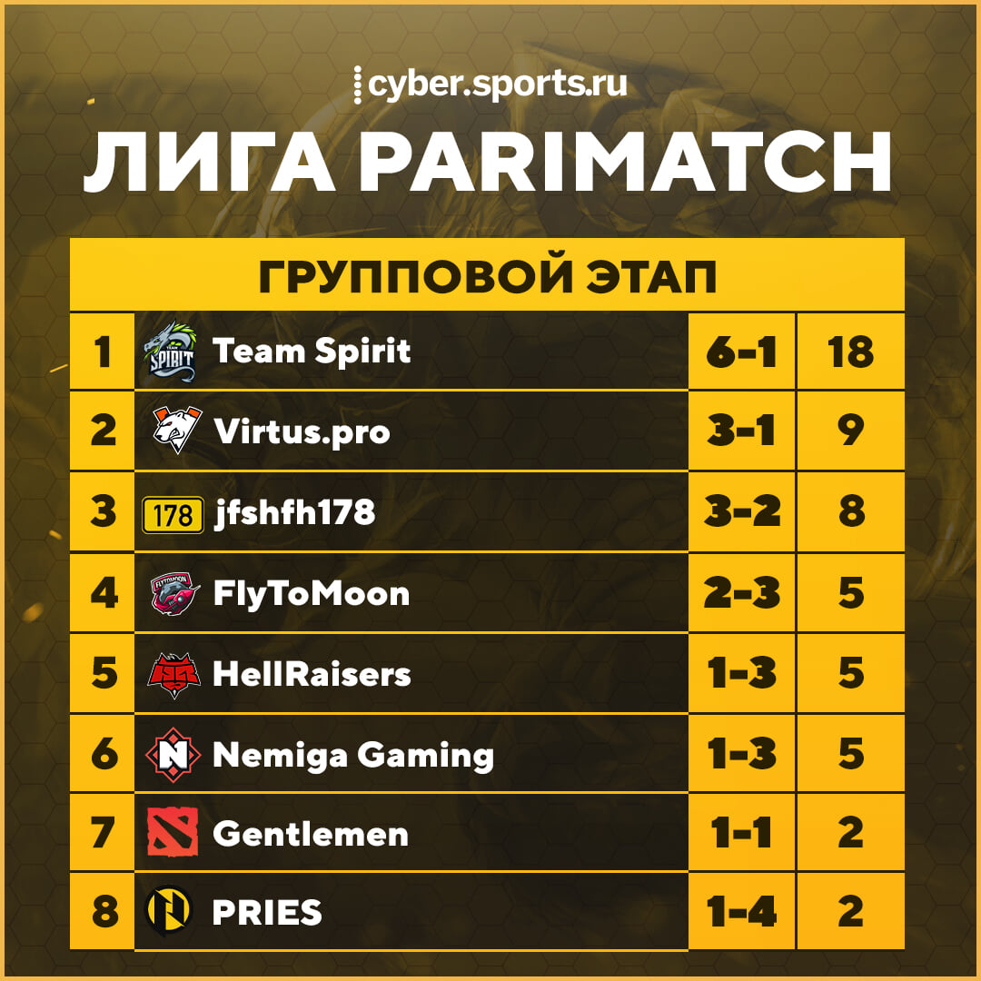 Сейчас у Spirit 18 очков после 7 матчей, команда не опустится ниже четвертого места. Команды, занявшие места в топ-4 на онлайн-стадии, выйдут на лан-финал, который пройдет в Москве с 28 по 30 ноября.