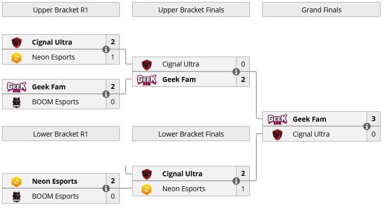 Список участников: Neon, Boom, Cignal Ultra, Geek Fam