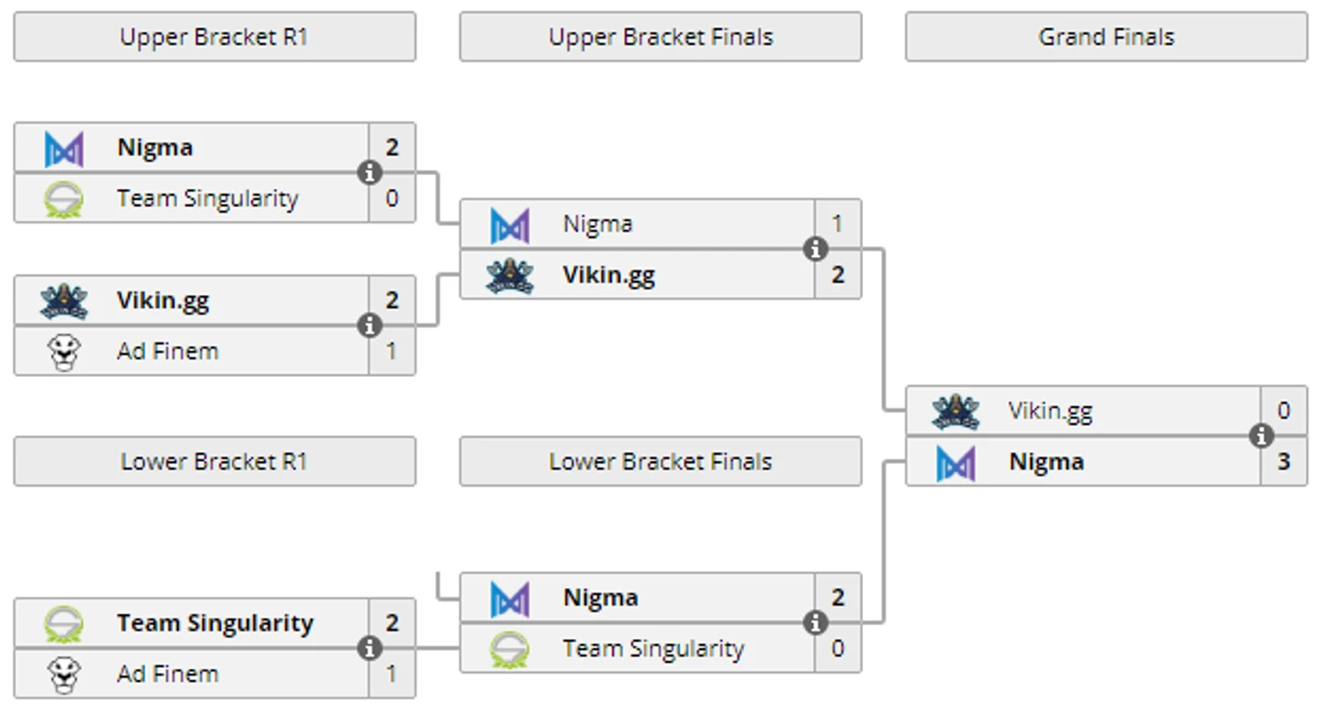 5 декабря 16:30 Nigma 2:0 Team Singularity / финал нижней сетки19:30 Vikin.gg 0:3 Nigma / гранд-финал