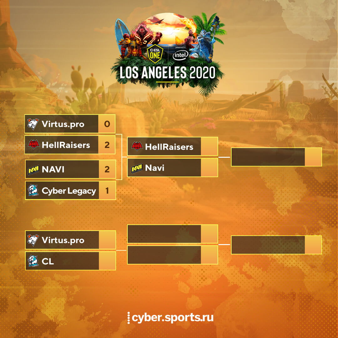 14:00 Virtus.pro 0-2 HellRaisers17:00 NAVI 2-1 Cyber Legacy