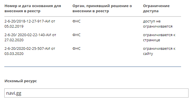 При попытке перейти на страницу появляется следующее сообщение: «Доступ к информационному ресурсу ограничен на основе Федерального закона от 27 июля 2006 г. N 149-ФЗ «Об информации, информационных технологиях и о защите информации». Сайт NAVI также пропал из поисковой системы Яндекс.