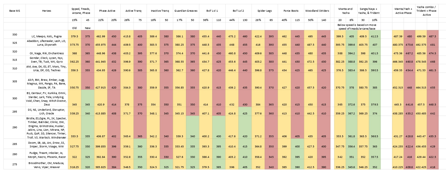 Пользователь Реддита Hoopapotomus опубликовал таблицу с изменениями скорости передвижения всех героев в Dota 2.
