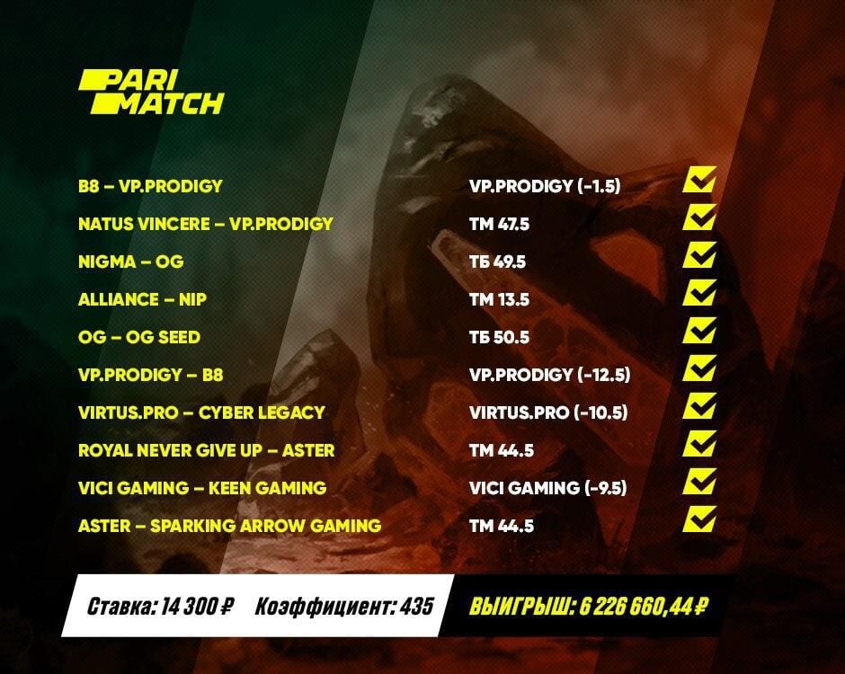 Фанат Доты выиграл 6 млн рублей на экспрессе из 10 событий