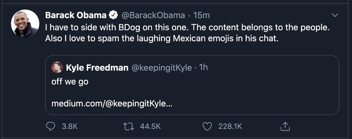 AdmiralBulldog удалил твиты про стримы турниров и опубликовал скриншот, на котором Обама с ним соглашается. Позже удалил и его