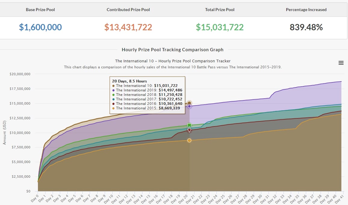 Призовой фонд The International 2020 превысил 15 млн долларов за 20 дней и 8,5 часов после выхода Боевого пропуска.