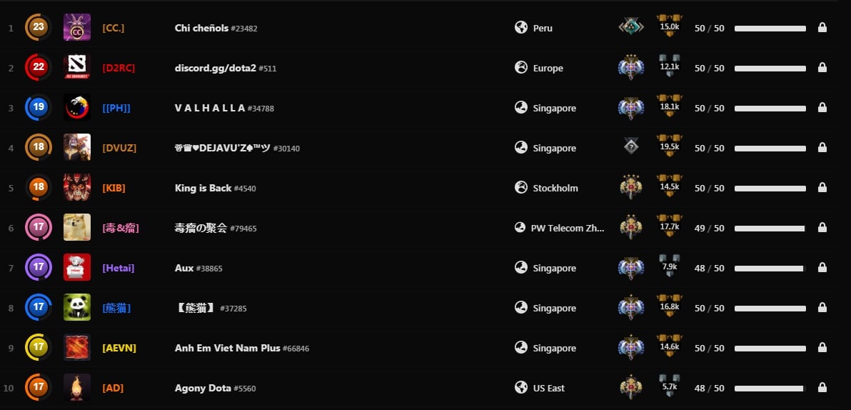 Гильдия [CC.] из Перу первой в Dota 2 достигла 23-го уровня.