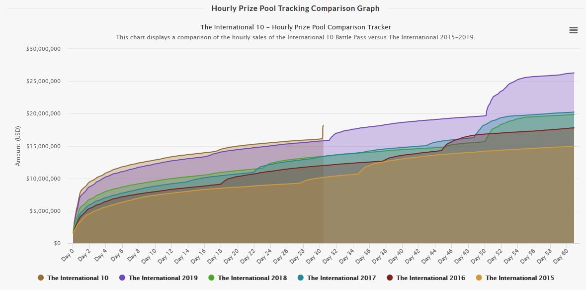 Базовый призовой фонд турнира – 1,6 млн долларов, в призовой фонд также идут 25% от всех продаж, связанных с Battle Pass.