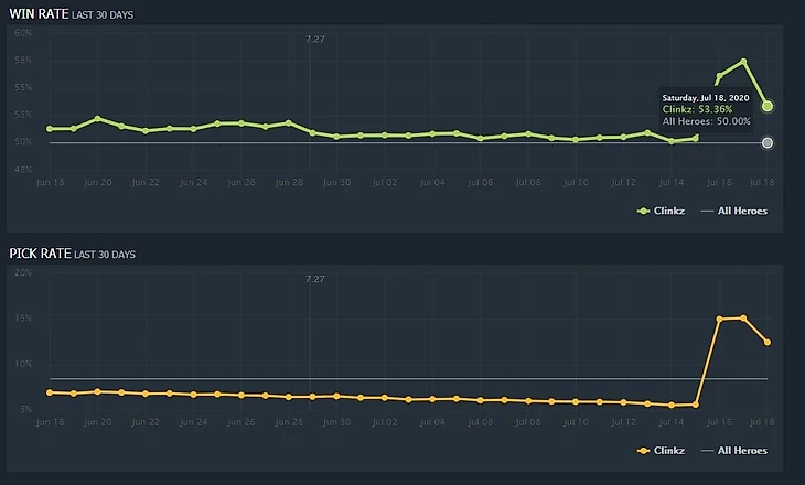 Винрейт Клинкза упал на 4% после выхода патча 7.27c
