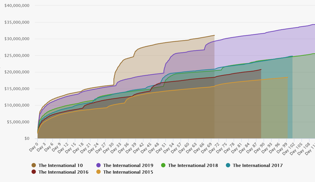 За аналогичный отрезок времени призовой фонд предыдущего TI достиг отметки в 29,2 млн долларов.