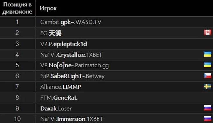 Мидер Gambit Данил «Gpk» Скутин занимает первое место по MMR на европейском сервере.