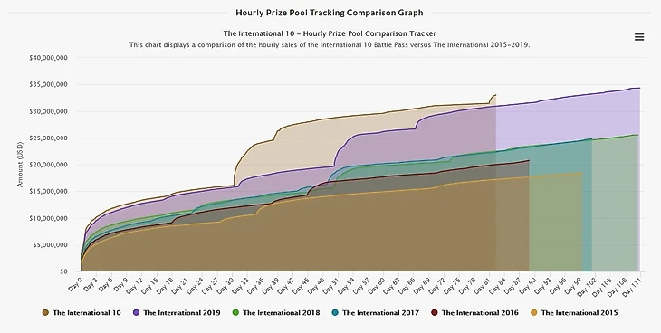 16 августа призовой фонд The International 10 превысил 33 млн долларов. После релиза Battle Pass прошло 82 дня.