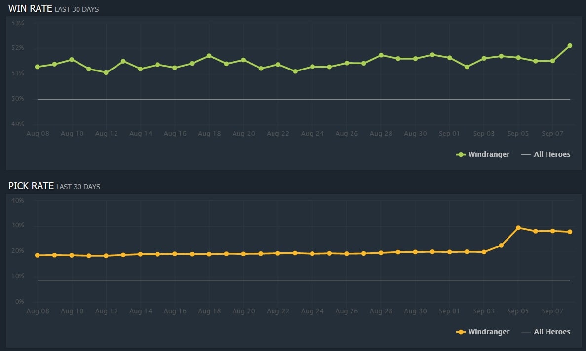 Доля побед Windranger увеличилась с 51,7% до 52,12%.