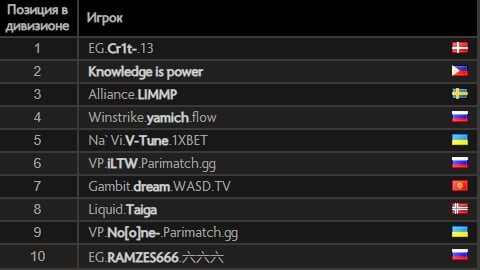 Топ-10 европейского ладдера
