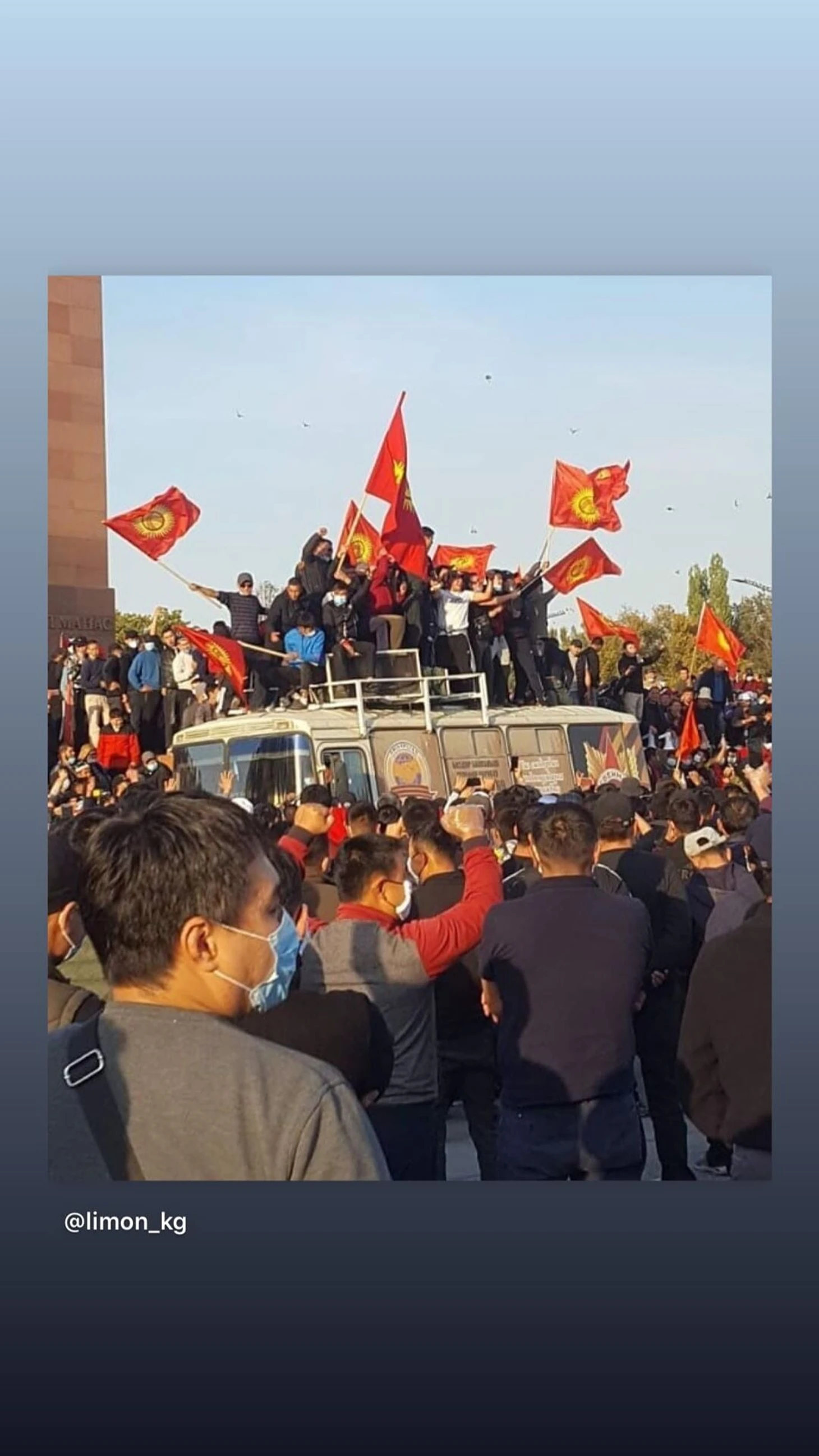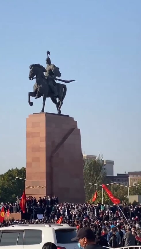 Митинги начались в центре Бишкека 5 октября. Участники протестов считают выборы в парламент сфальсифицированными – по их словам, на участках случались критические нарушения и подвозы бюллетеней.