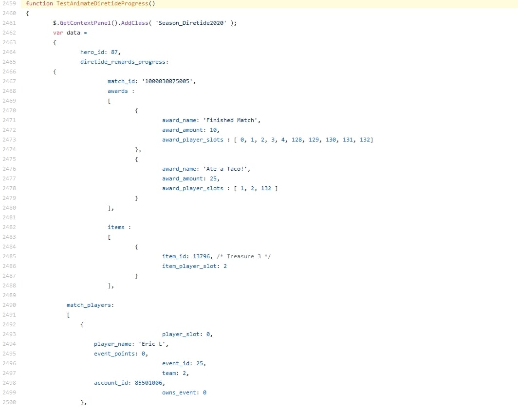 Режим игры – 5 на 5В конце матчей игроки будут получать наградыПоявятся либо платная подписка, либо бонус для обладателей Dota Plus (что вероятнее)Появится расходуемый предмет «Съел тако!»Вероятно, подписчикам будут падать эксклюзивные сокровищницы. Сундук будет выдаваться одному игроку, в файлах использован ID Immortal Treasure 3 2020.Скорее всего, ивент пройдет в формате Battle Pass, так как все игроки будут получать по 10 очков в конце матча.