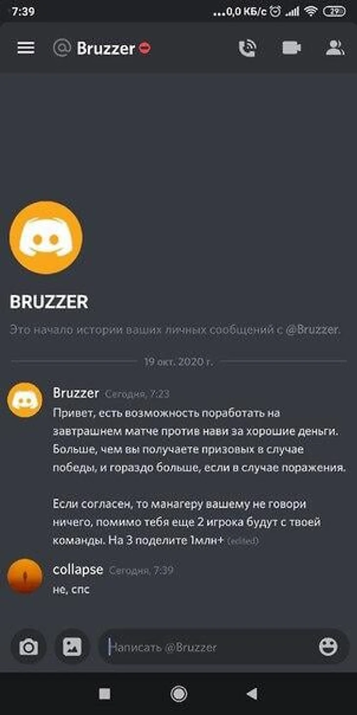 Оффлейнеру YeS! Магомеду «Collapse» Халилову неизвестный предложил «поработать» на матче против NAVI в рамках ESL One Germany «за хорошие деньги». Коллапсу пообещали, что кроме него в 322 поучаствуют еще два члена его команды, а в случае согласия игроки получат более одного миллиона рублей на троих.