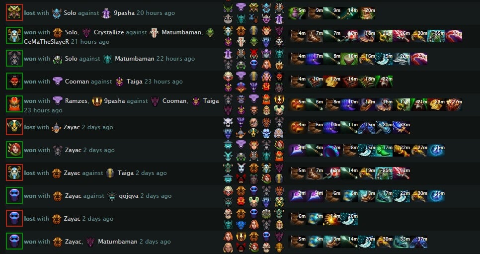Капитан Virtus.pro Алексей «Solo» Березин сыграл 3 матча в паблике на саппорте четвертой позиции в пати с оффлейнером.
