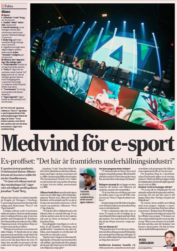 Согласно материалу, у Джонатана «Loda» Берга и Йоакима «Akke» Актералла по 32% акций компании, Хенрик «AdmiralBulldog» Анберг владеет 22%, а Келли «kellymilkies» Онг – 5%. 2,5% принадлежат игроку состава по Super Smash Bros. Адаму «Armada» Линдгрену. Другие владельцы компании – бывшие игроки Alliance