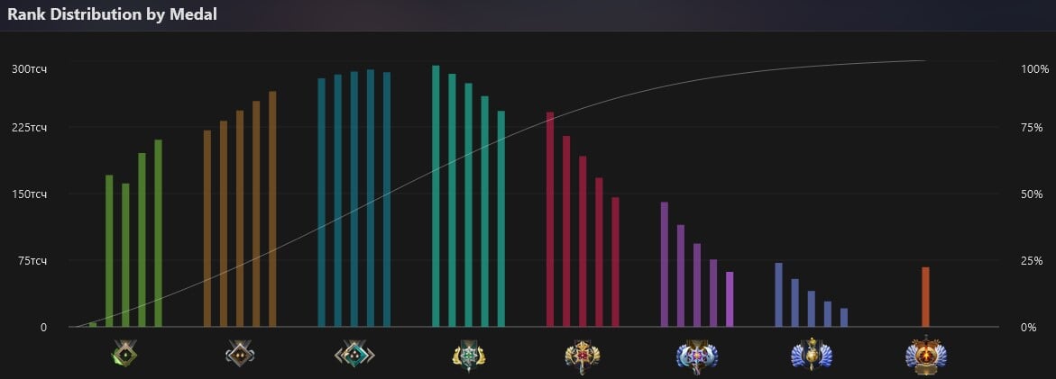В Dota 2 больше всего игроков ранга «Рыцарь» – 1,4 млн. Дотеров ранга «Титан» меньше в 21 раз