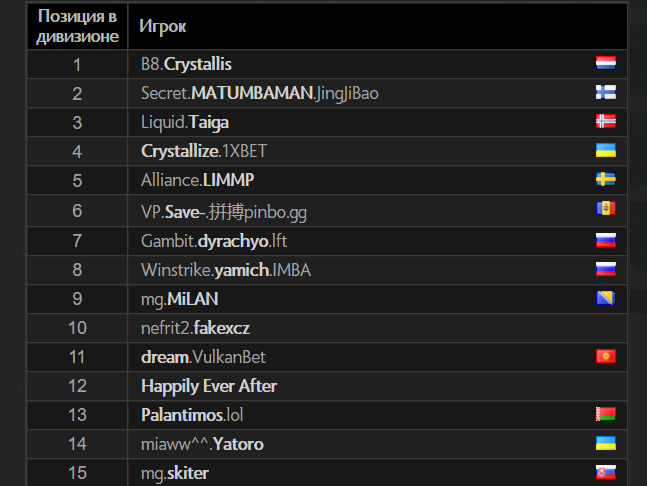 Керри B8 занял первое место в европейском ладдере. Матумба – второй, Тайга – третий