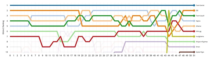 Noxville отметил, что едва заметными линиями отмечены команды, которые не попали в топ-10 по итогам года: Singularity, OG Seed, Aggressive Mode и немного Ad Finem.