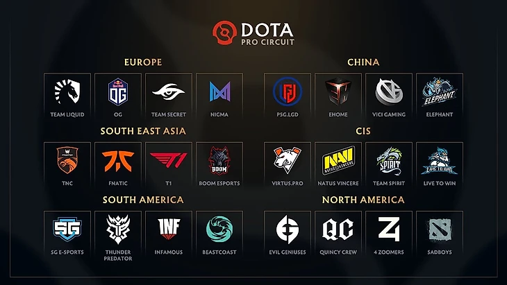 Европа: Team Liquid, OG, Team Secret, Nigma.Юго-Восточная Азия: