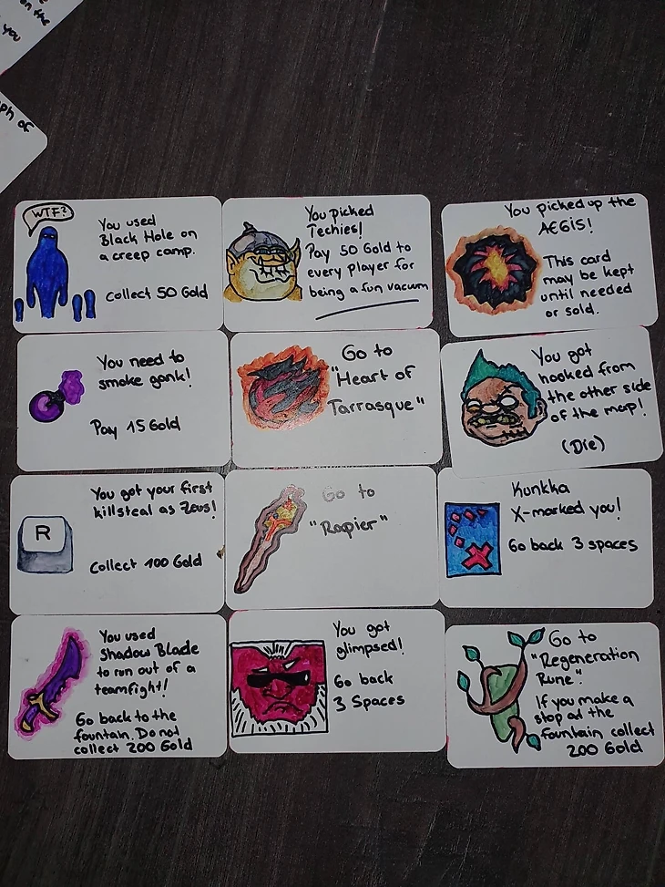 Помимо карточек на поле были созданы и кастомные ситуативные карды – они позволяют получить золото или забирают его у игрока, а также двигают игрока на определенное поле.