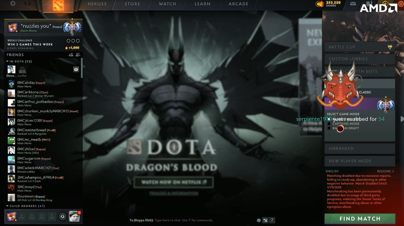 В описании бана указано, что доступ к матчмейкингу ограничен навсегда, а сам аккаунт будет заблокирован до 2038 года. Причина блокировки – «использование сторонних программ, нарушение правил пользования Steam, обход системы матчмейкинга или другие нарушения».